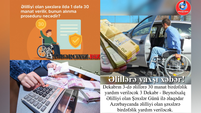 Bu 30 manatlıq yardım 3 Dekabr – Beynəlxalq Əlilliyi olan Şəxslər Günü münasibətilə dövlət tərəfindən ayrılır və birdəfəlik ödənişdir. Onu almaq üçün aşağıdakı prosedur tətbiq olunur: